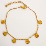 Pulseira de pé em aço inoxidável com 6 mini conchas.