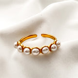 Anel em aço inoxidável dourado com Pérolas Shell - Waterproof
