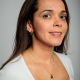 Conjunto compuesto por pendientes con piedras naturales redondas de 8mm y alambre veneciano de 43 cm de largo + alargador de 7 cm y colgante con el mismo tamaño de piedra.