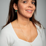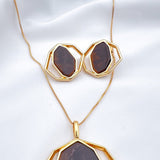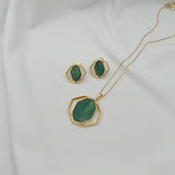 Conjunto compuesto por pendientes con piedras naturales de 20x12 mm e hilo veneciano de 60 cm de largo + alargador de 7 cm y colgante con la misma piedra de 30x19 mm.