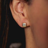 Brinco quadrado cravejado de zircônias na cor branca banhado a ouro 18k.