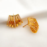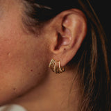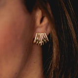 Meia argola com 7 fileiras, sendo 3 com zircónias na cor branca, banhada a ouro 18k.