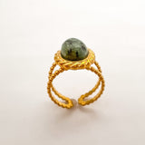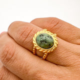 Anel Esverdeado em aço dourado