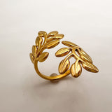 Anel Folhas em aço dourado